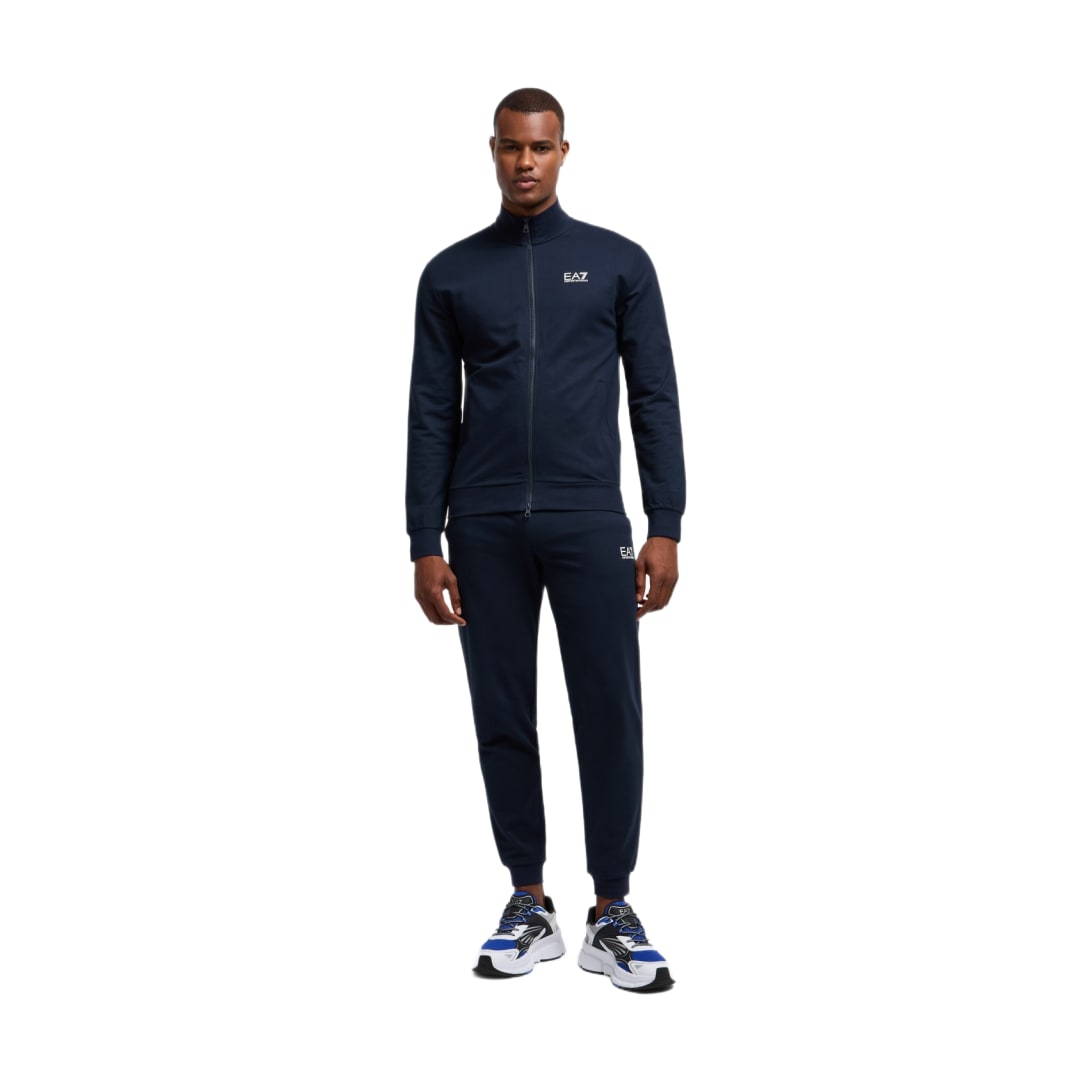 TRAIN CORE ID M T-SUIT T-TOP F ARMANI BLUE: The go-to tracksuit for effortless comfort. This Armani Blue set offers a relaxed fit and full-zip closure, making it the ideal choice for travel and post-workout recovery.