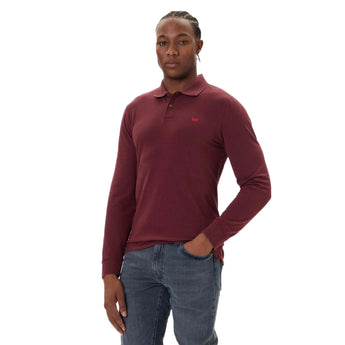 The Smart Polo: Long sleeves and a slim fit in a rich Tawny Port hue. The perfect bridge between a casual tee and a formal shirt.