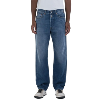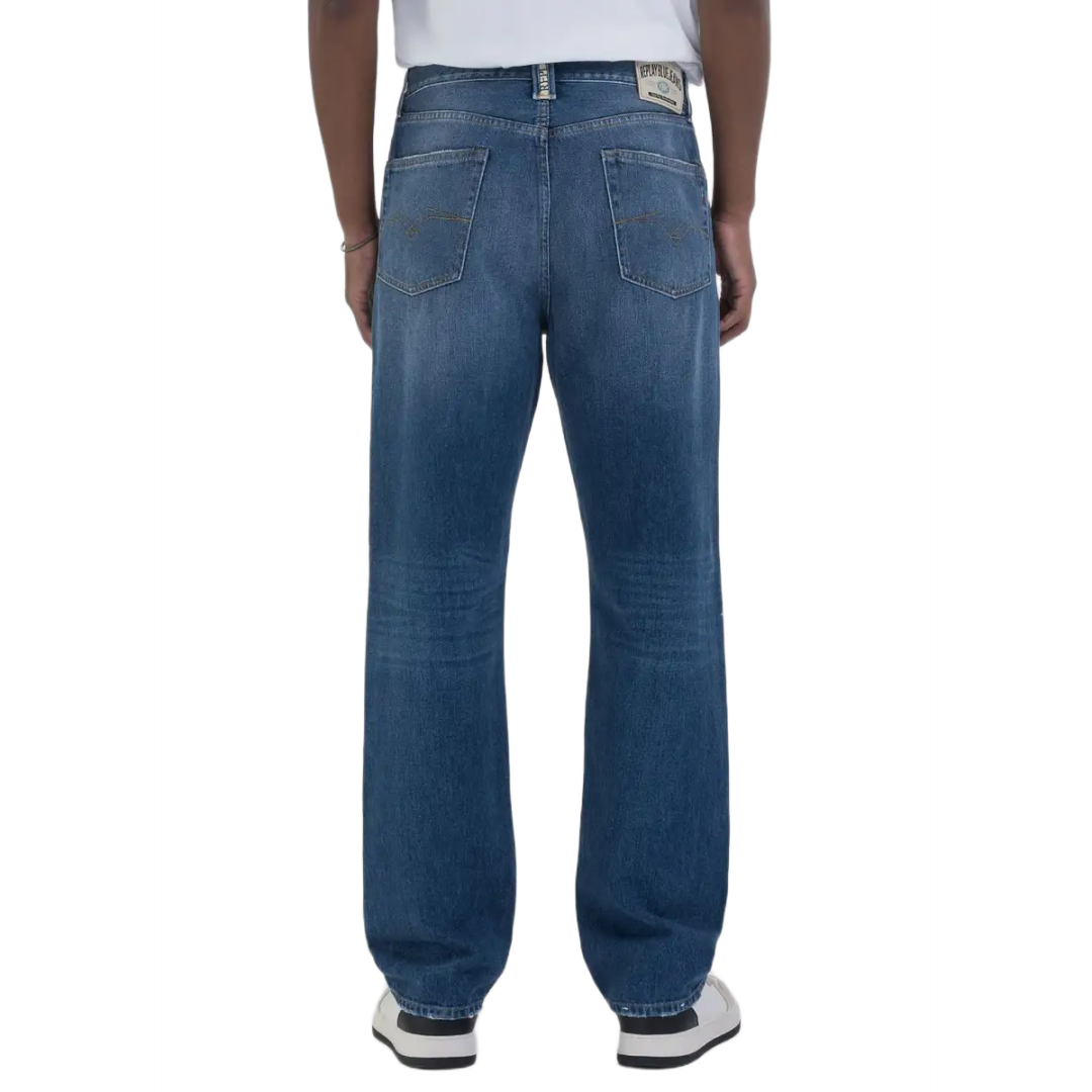 STRAIGHT FIT 12 OZ RECYCLED INDIGO COTTON DENIM: Sustainability meets heritage. These straight-fit jeans utilize 12 oz recycled indigo cotton denim, offering a classic silhouette and a robust, environmentally conscious construction.