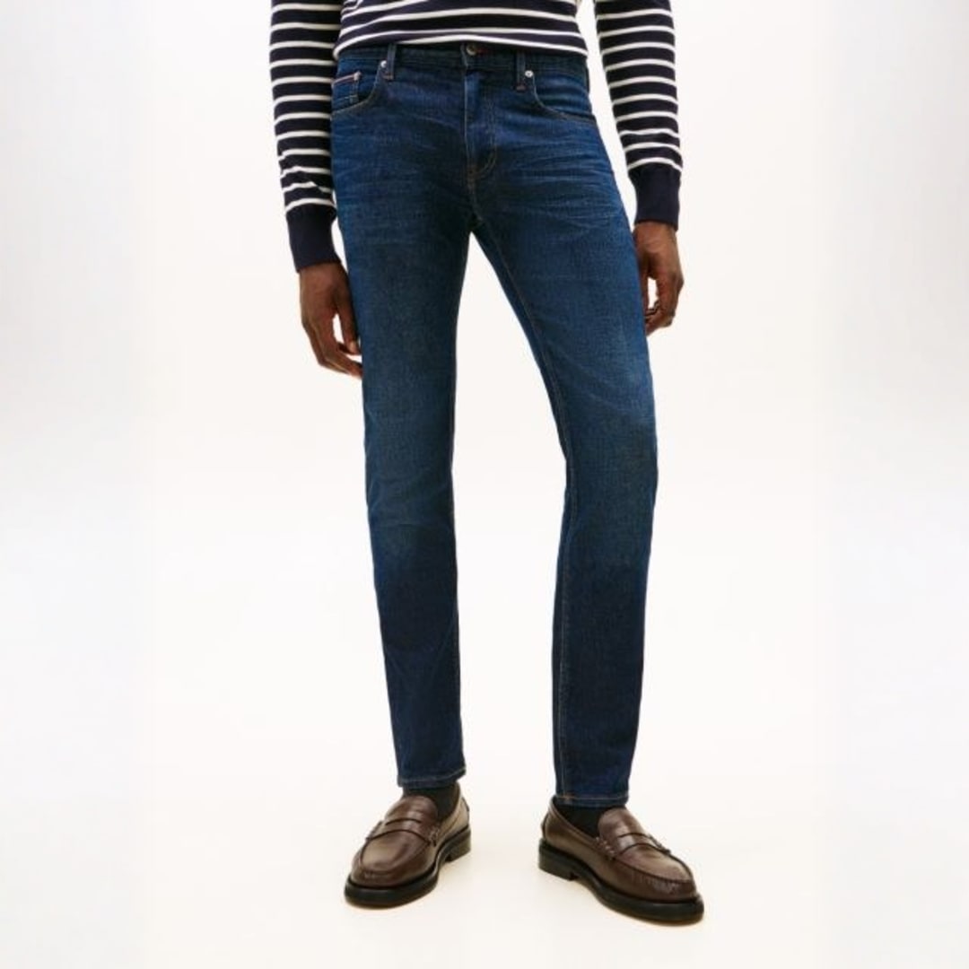 Slim Bleecker Stretch Benton Blue Jeans: Modern slim-fit jeans that are tailored through the leg but comfortable due to added stretch.