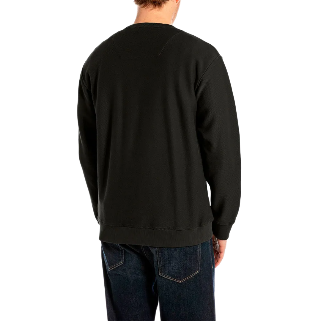 REPLAY DIAGONAL INTERLOCK FLEECE SWEATSHIRT: Innovative texture. This black sweatshirt is crafted from diagonal interlock fleece, giving it a unique, subtle diagonal pattern and exceptional softness.