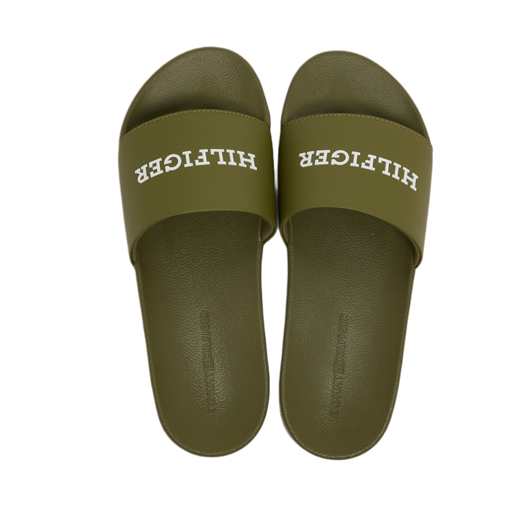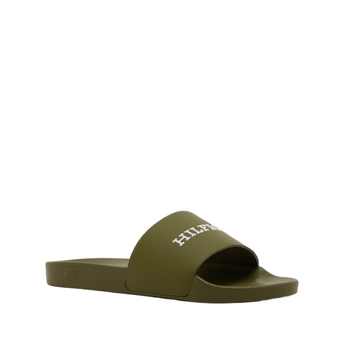 The Tommy Hilfiger Raised Pool Slides feature a comfortable footbed and a modern, logo-embossed strap.