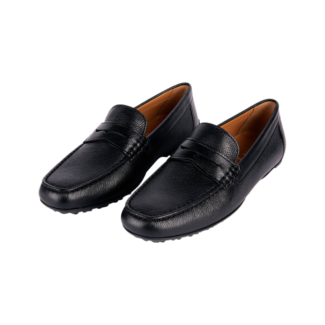 Elegance in Motion: A classic black leather loafer designed with an ergonomic fit and a sole that breathes with you.