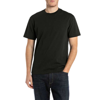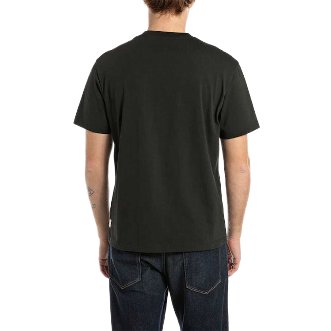 REPLAY OPEN END DRY HAND JERSEY T-SHIRT (Black): Experience the ultimate dry handfeel. This black tee is made from open-end jersey, known for its subtly rough, vintage texture and comfort.