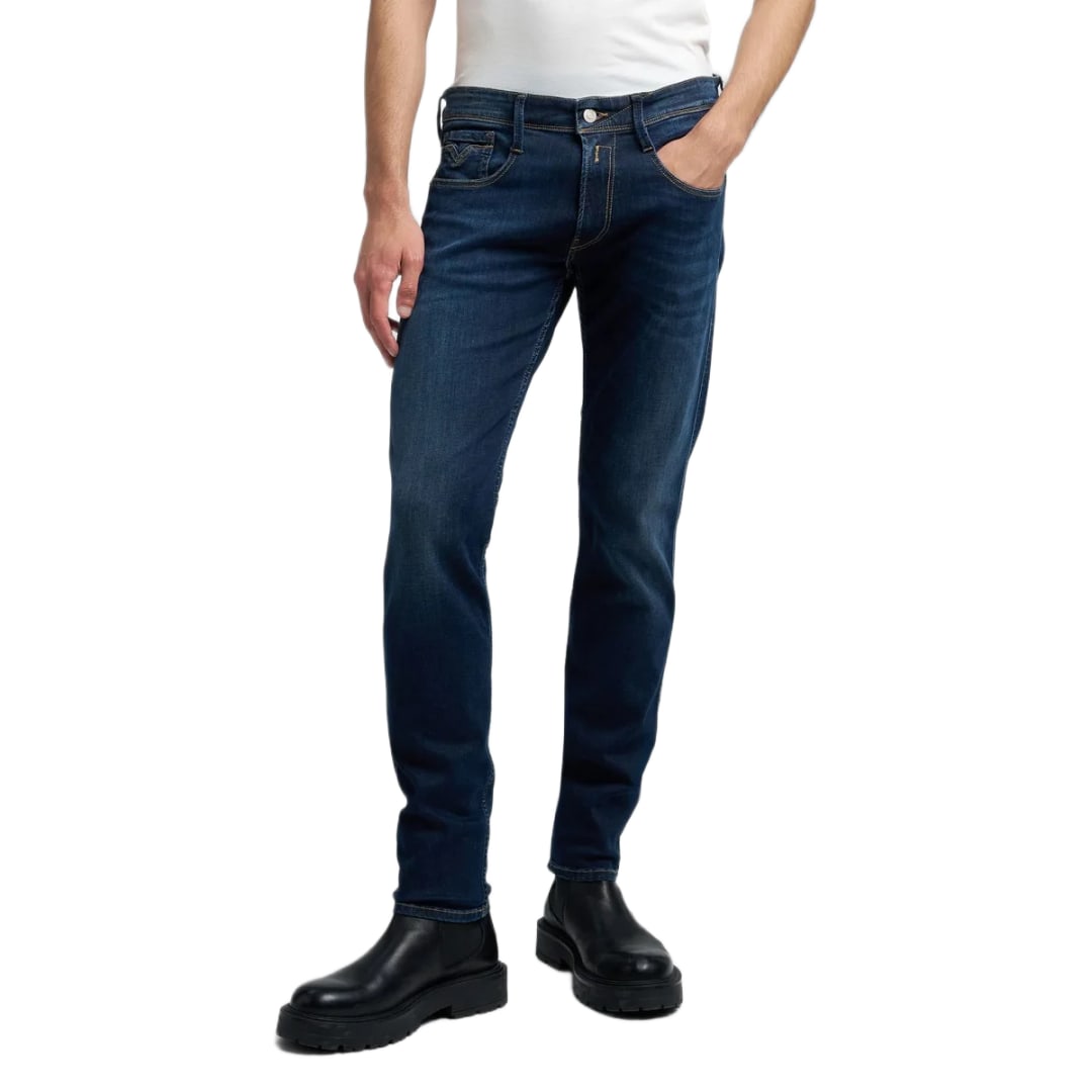 REPLAY Dark Indigo Power Stretch Denim: 10oz denim engineered with powerful stretch for ultimate comfort and flexibility without compromising shape.