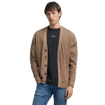REPLAY WOOL BLEND FAST DYED CARDIGAN (Blue): A classic blue cardigan made from a cozy wool blend. The fine 12-gauge knit ensures a soft feel and tailored fit.