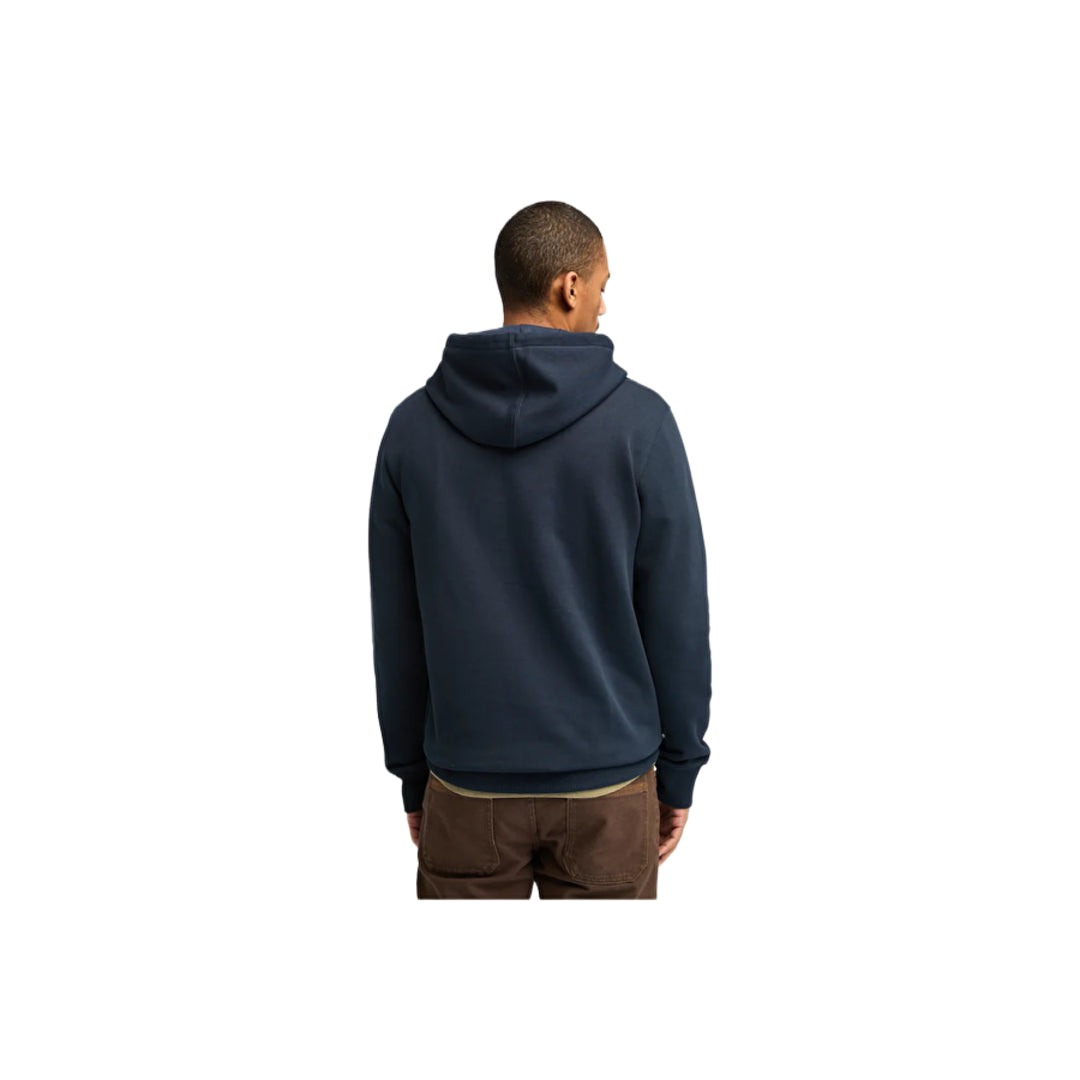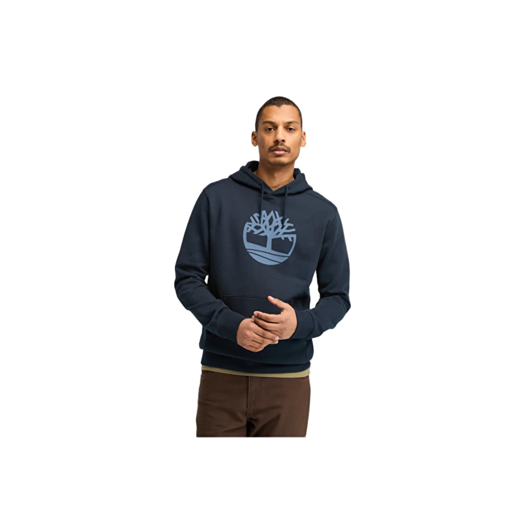 The Heritage Hoodie: Stay cozy in this Dark Sapphire hoodie featuring the iconic Timberland tree logo, crafted for warmth and longevity.