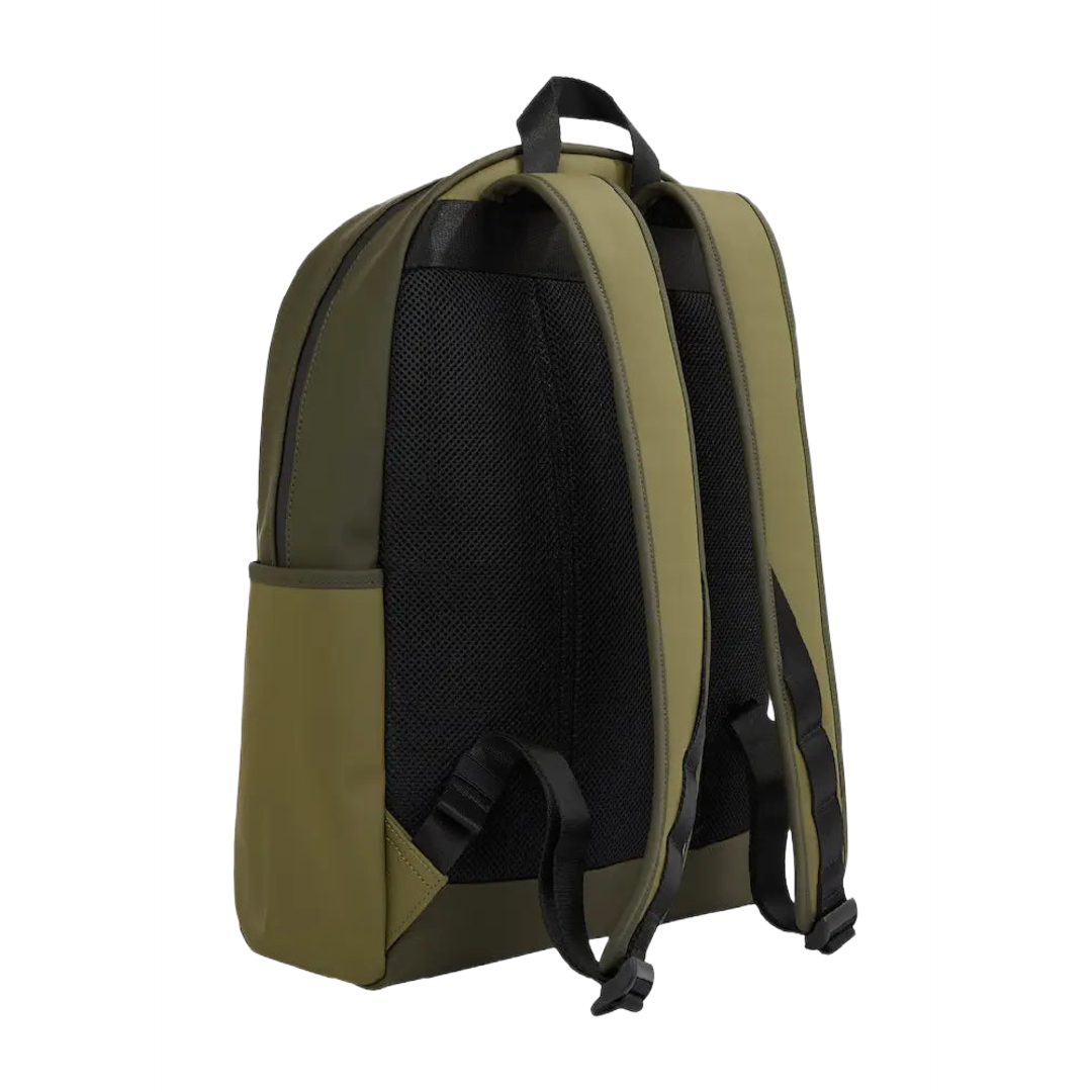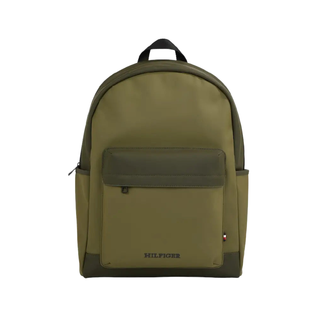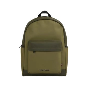 The Tommy Hilfiger Monotype Rain PU Dome Backpack offers a durable and modern design.