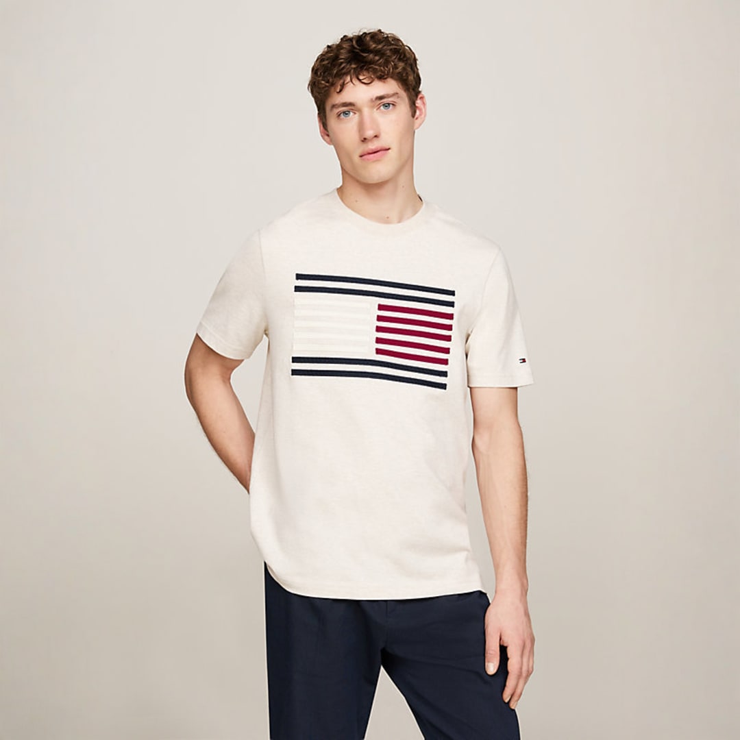 Grossgrain Flag Tee: Features the signature flag logo rendered in a subtle, structured grossgrain fabric patch.