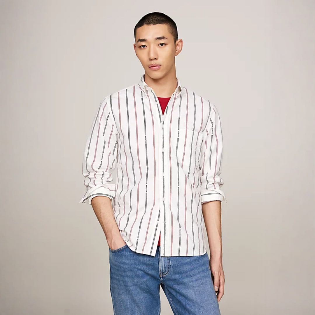 Hilfiger Double Stripe Regular Fit Shirt: Regular fit long-sleeve shirt featuring a distinctive double stripe pattern for a classic, nautical look.