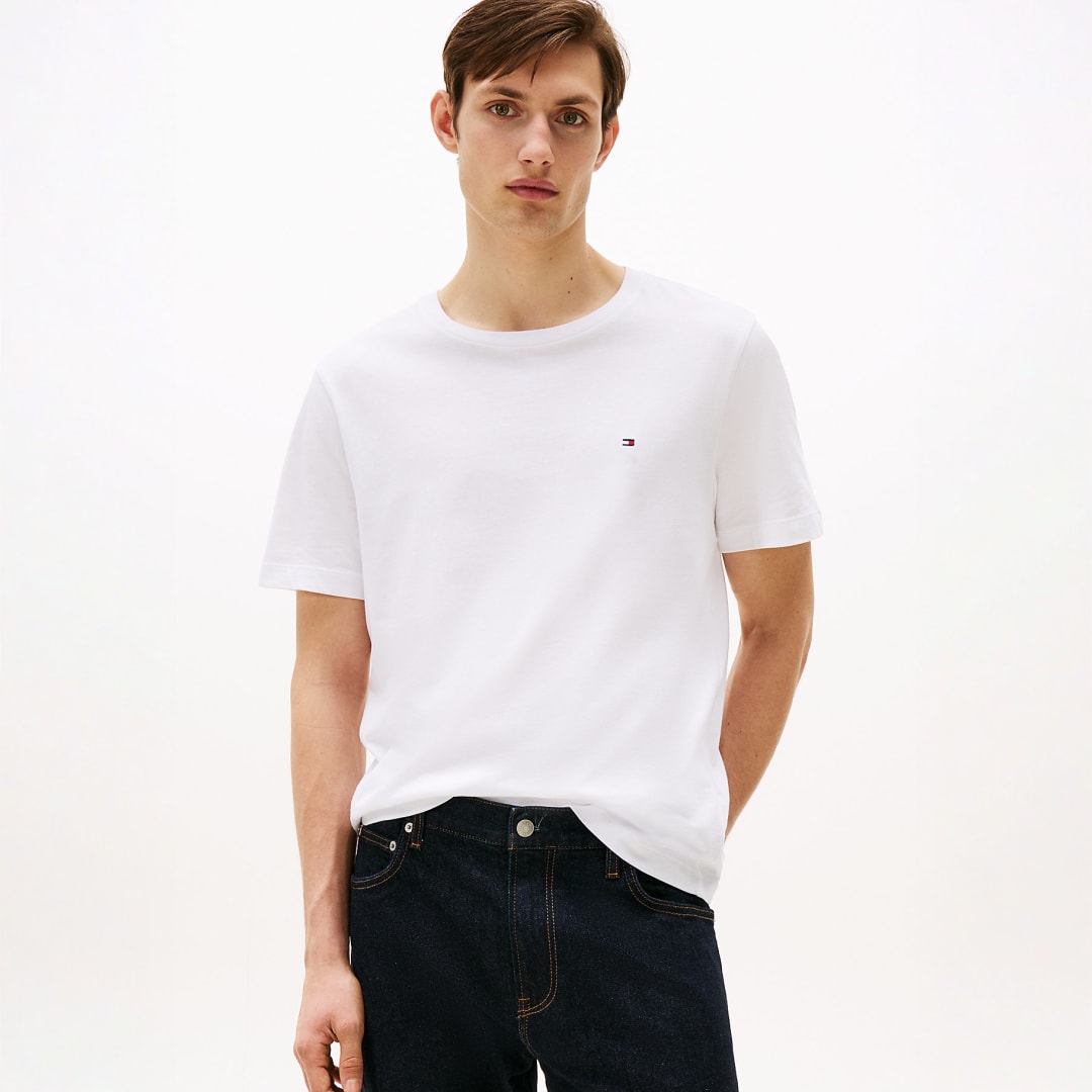 Essential Regular Fit Solid Tee: Essential solid T-shirt in a comfortable regular fit, subtly finished with a small flag embroidery.