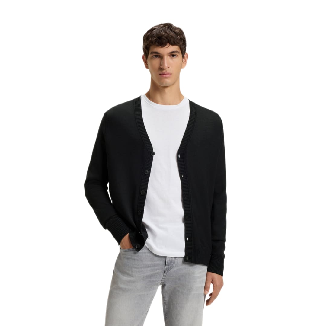Modern Knit Cardigan: A premium layering piece crafted for a streamlined fit. The ideal addition to smart-casual ensembles, offering texture and warmth.
