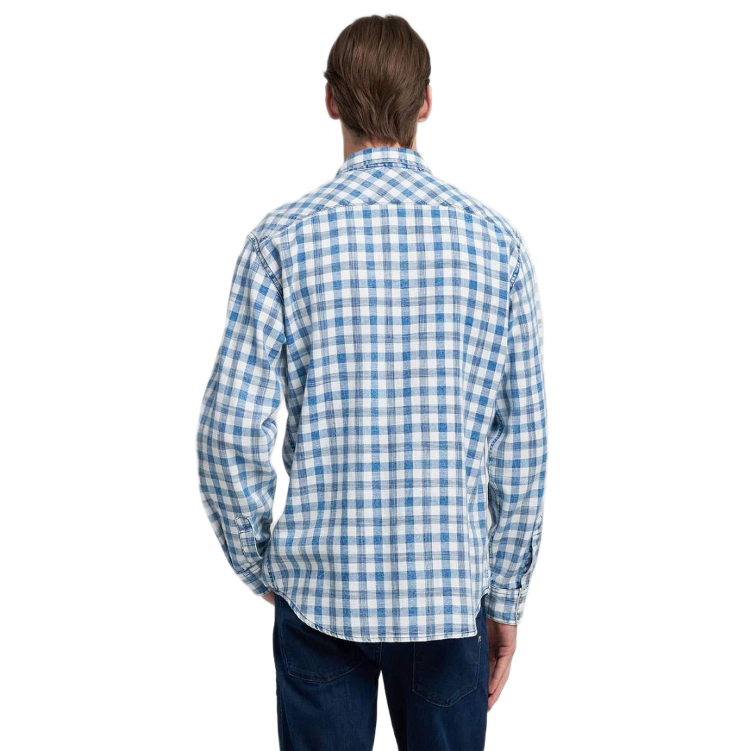 REPLAY BLEACHED INDIGO CHECKED COTTON SHIRT: Combining the softness of bleached denim with a check pattern, this shirt has a beautifully soft hand and a sun-washed, vintage aesthetic.